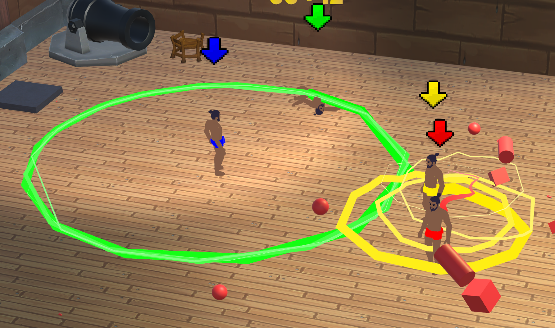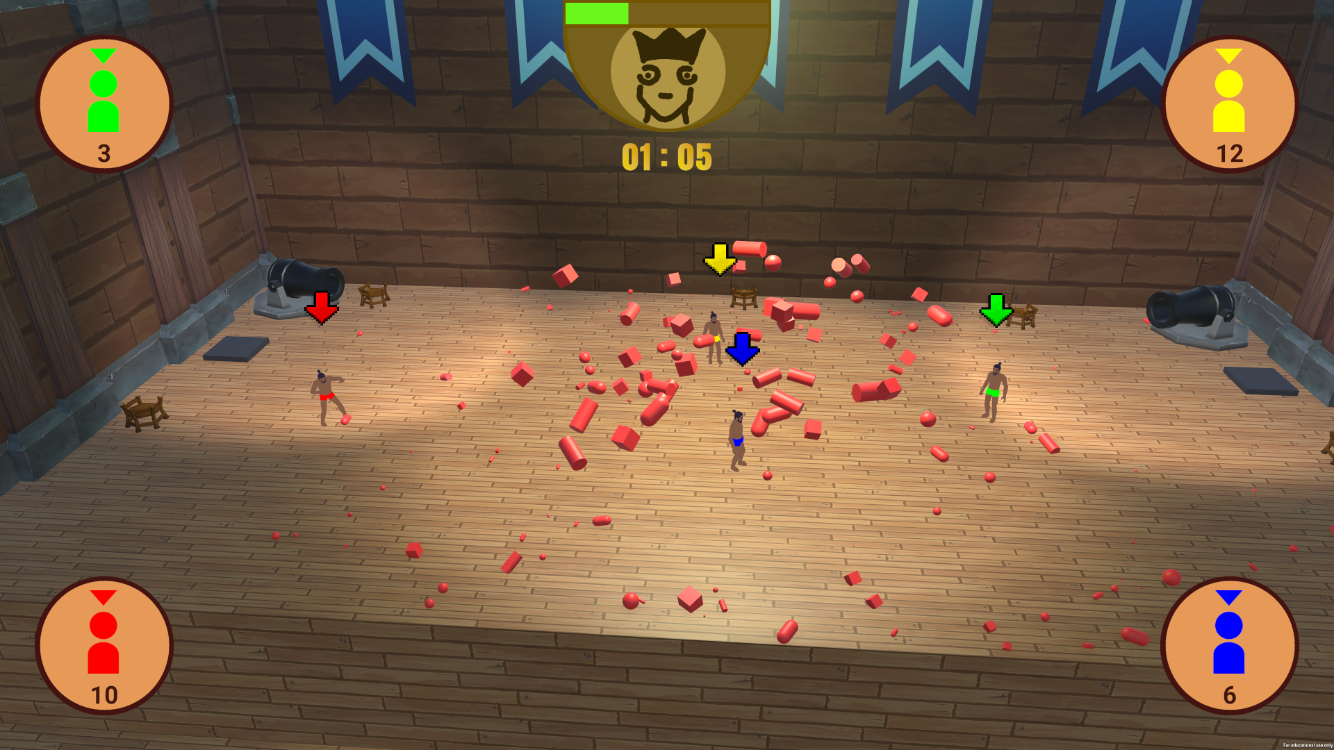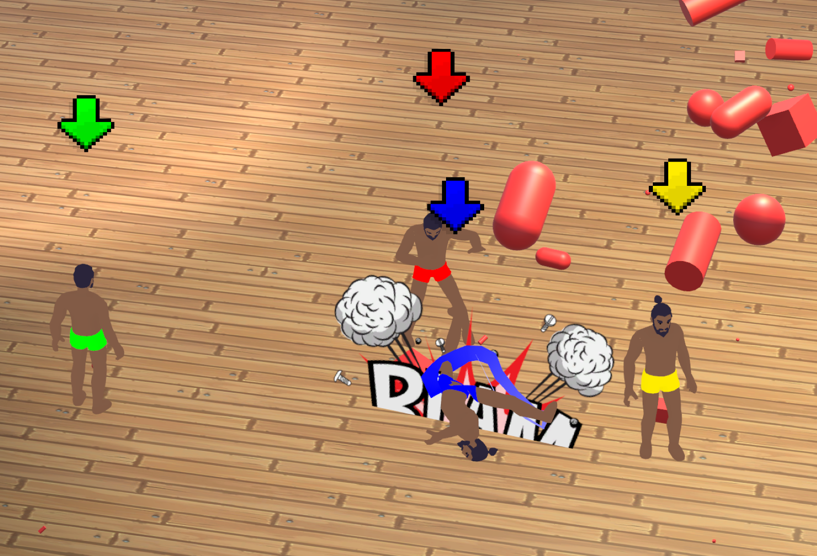 Developed by a team of four under the theme "Make Me Laugh", players play in a PvP arena to appease an overseeing king, trying to make them laugh. Players can slap each other, pick up and throw each other, throw objects at each other, and deliberately get hit by arena hazards in an effort to make the king laugh.